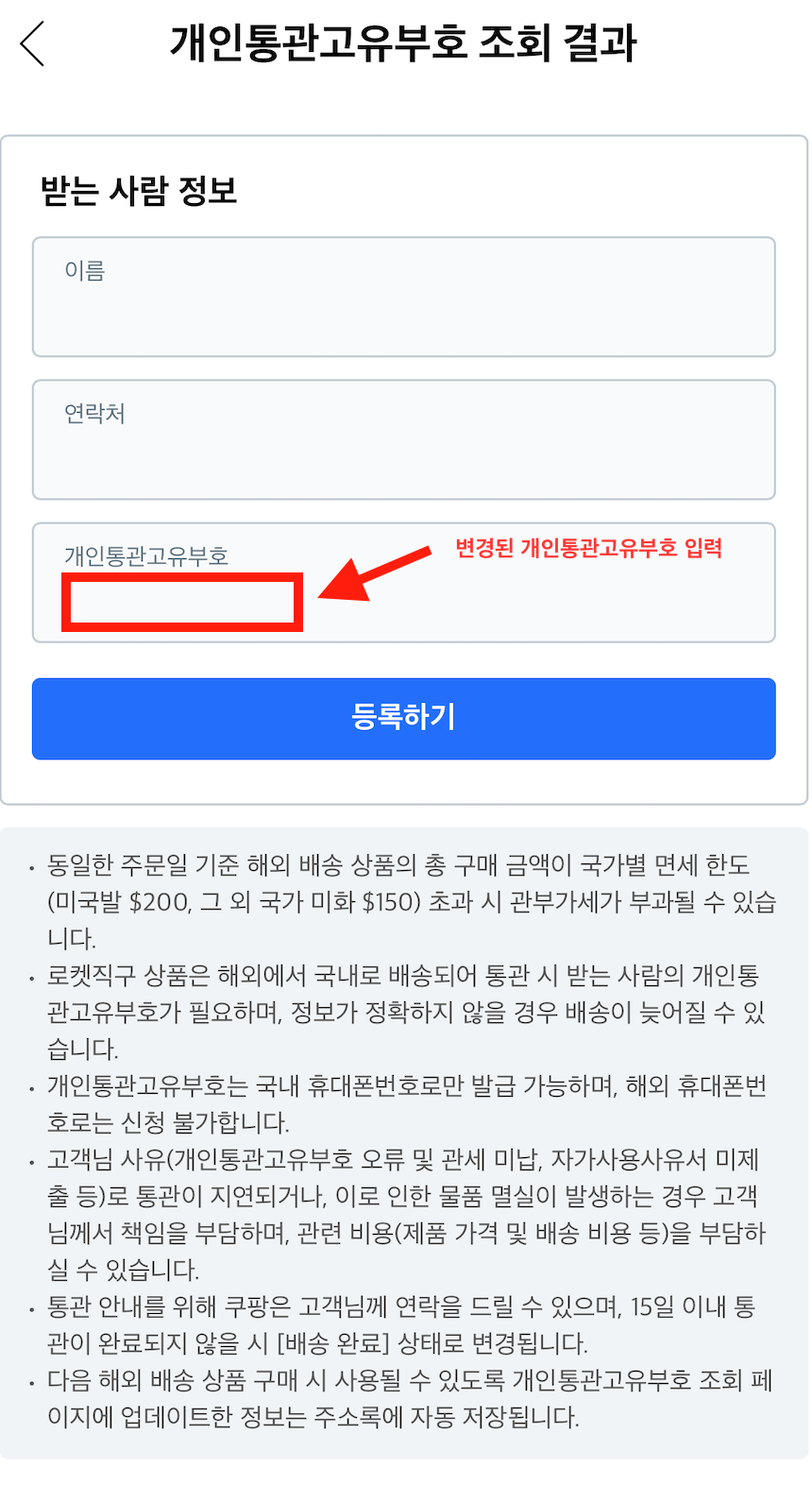4. 개인통관고유부호 바꾼 후 반드시 해야 할 일 (쿠팡 기준)
