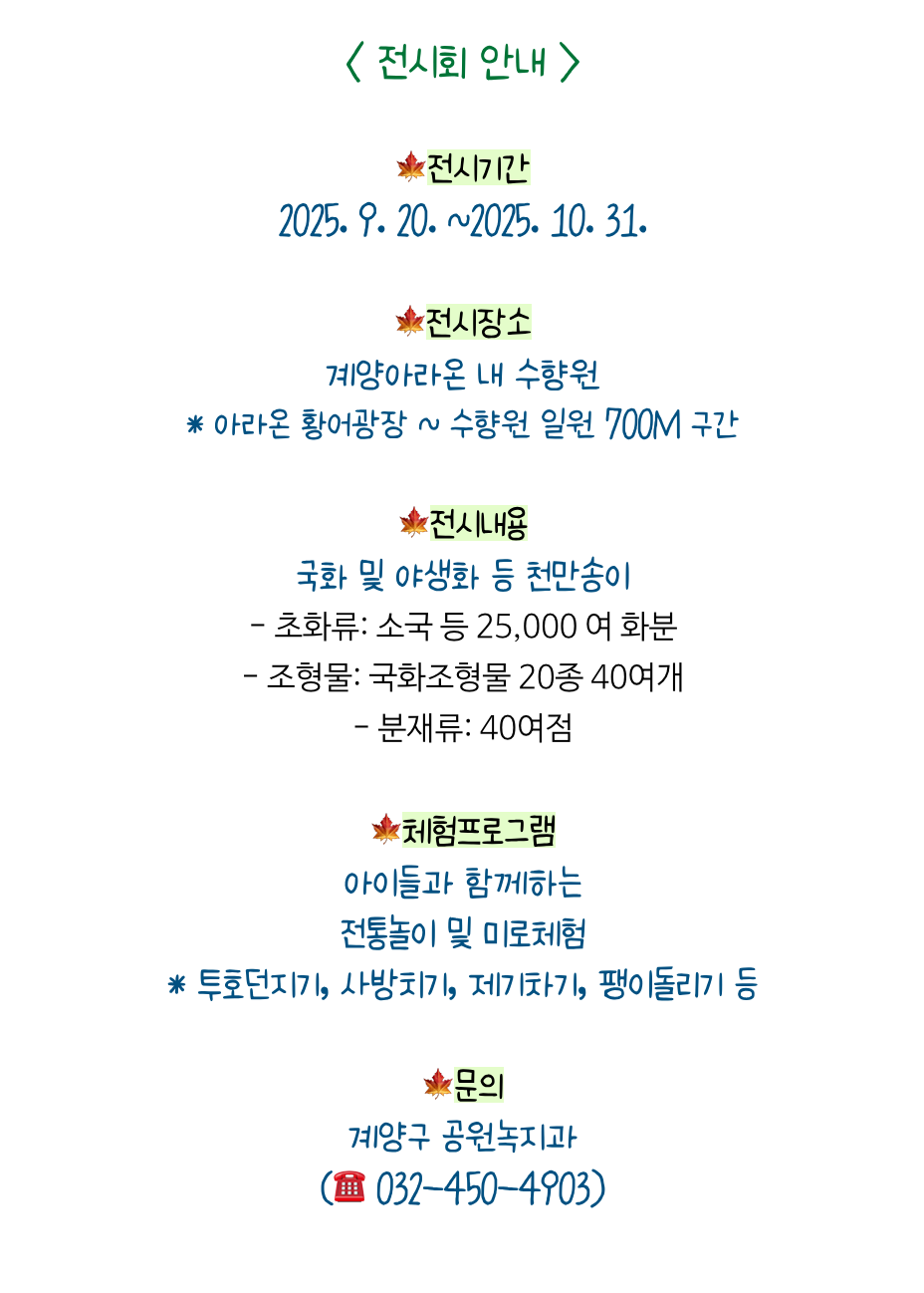 인천 계양 아라온 가을꽃 국화축제 2025년 일정·무료입장·가는법·주차장 정보까지 모두 정리했습니다. 가을 데이트·가족 나들이 계획 중이라면 필독!