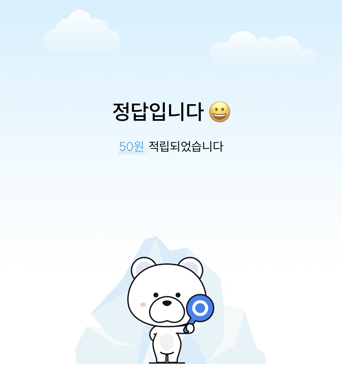- 1회 정답: 기본 10원 적립