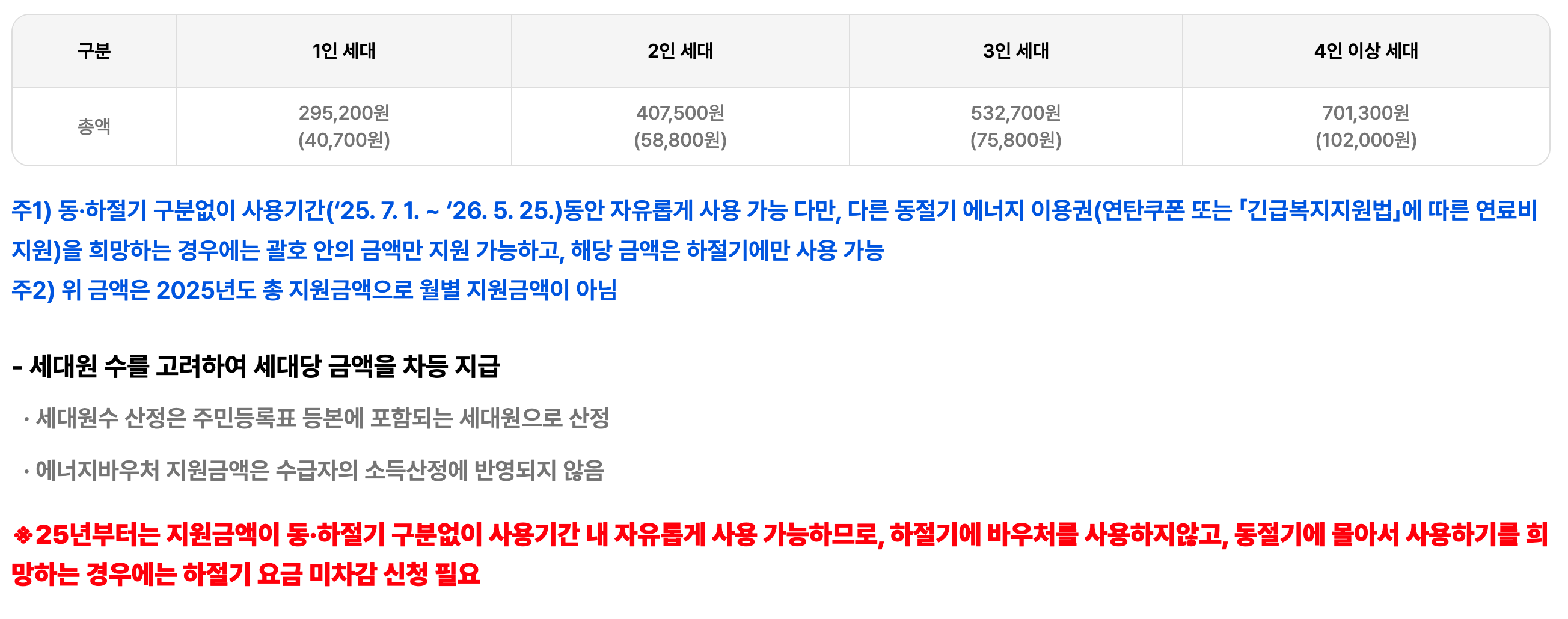 - 동절기 연료비 지원을 이미 받은 경우 중복 지원이 제한될 수 있습니다.