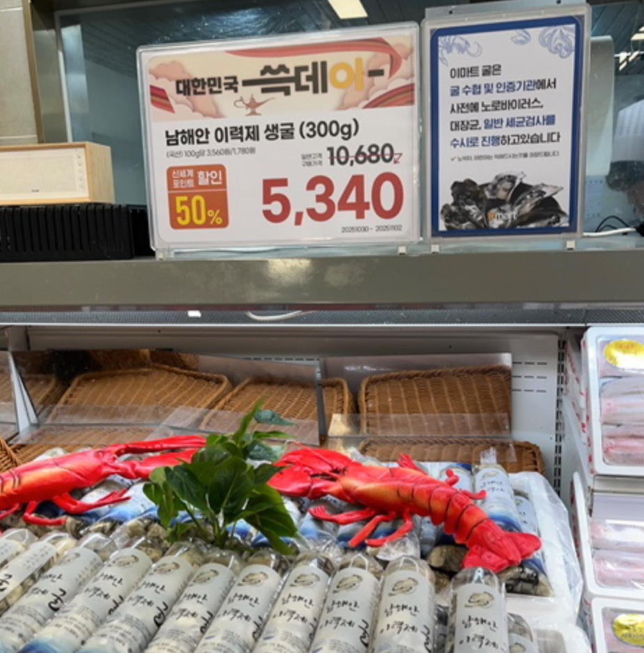 - 남해안 생굴 50% 할인 → 5,340원