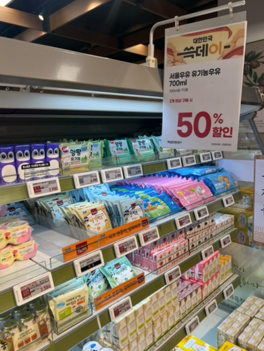 - 서울우유·유기농우유 700ml 2개 이상 50% 할인
