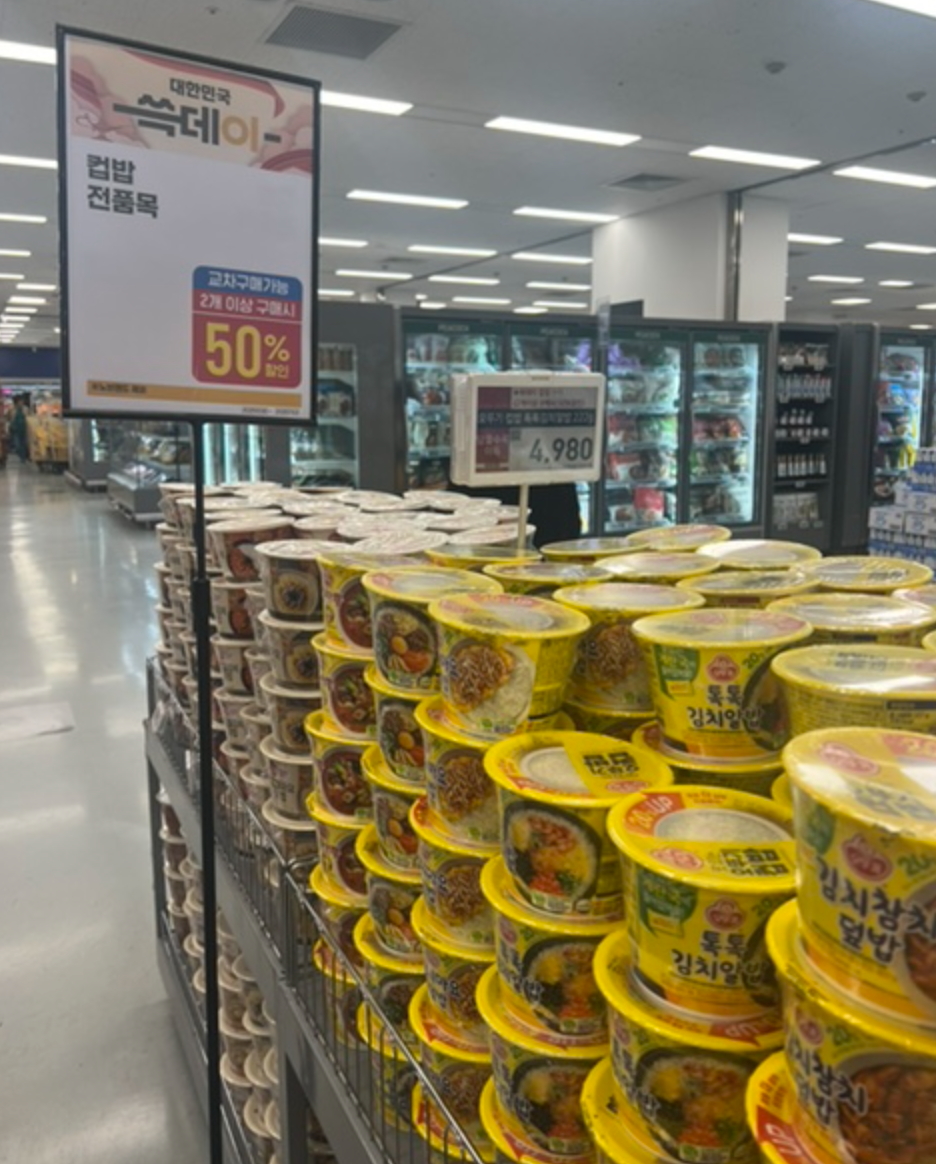 - 즉석밥·컵밥 전제품 2개 이상 50% 할인
