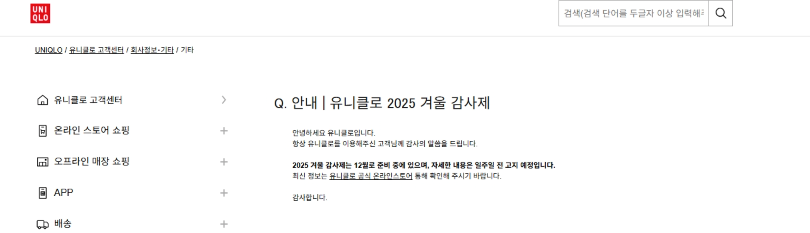 1. 유니클로 공식 발표 — 감사제는 ‘12월’ 확정