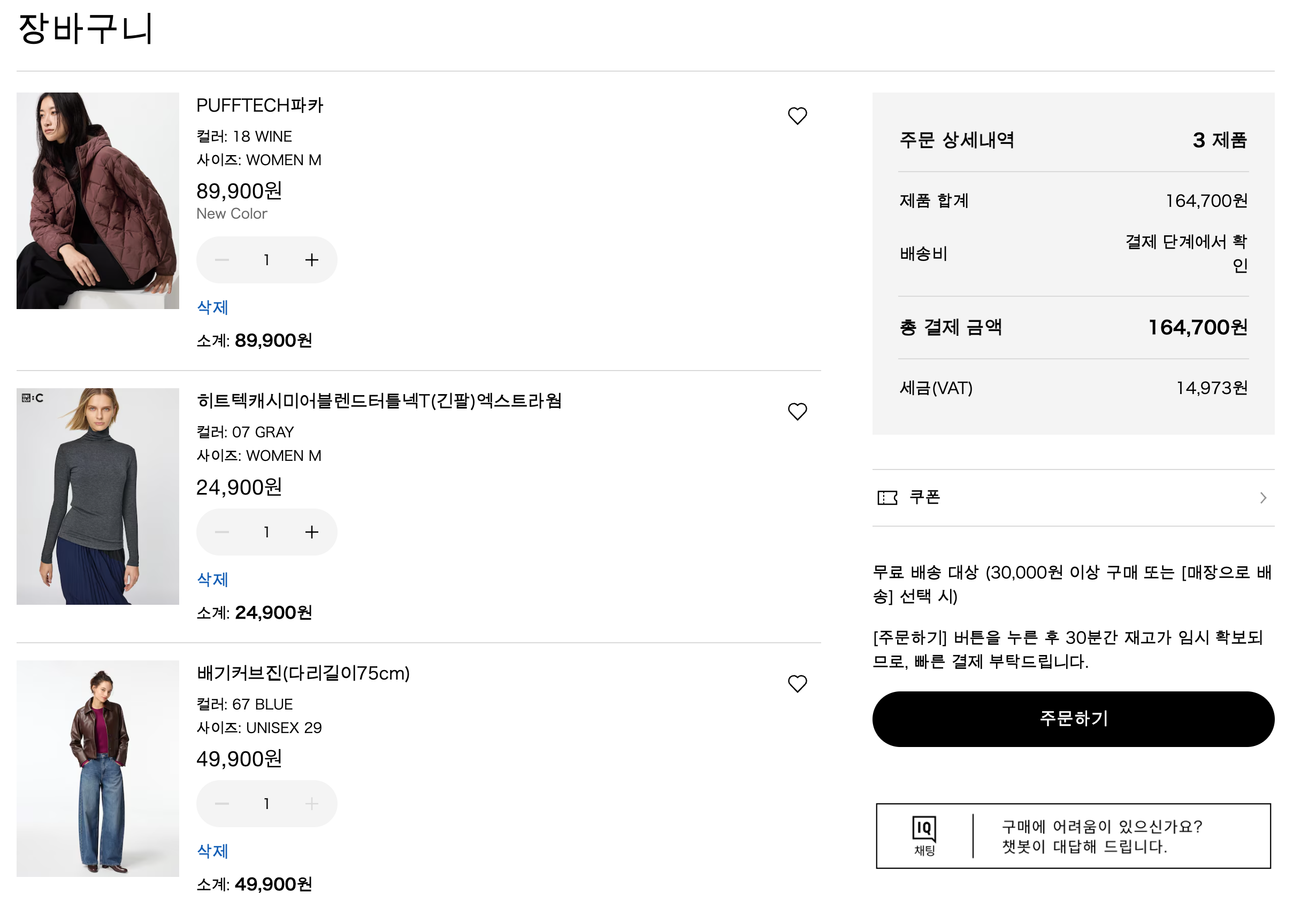 ✔ 히트텍·후리스·패딩은 장바구니 미리 담아두기