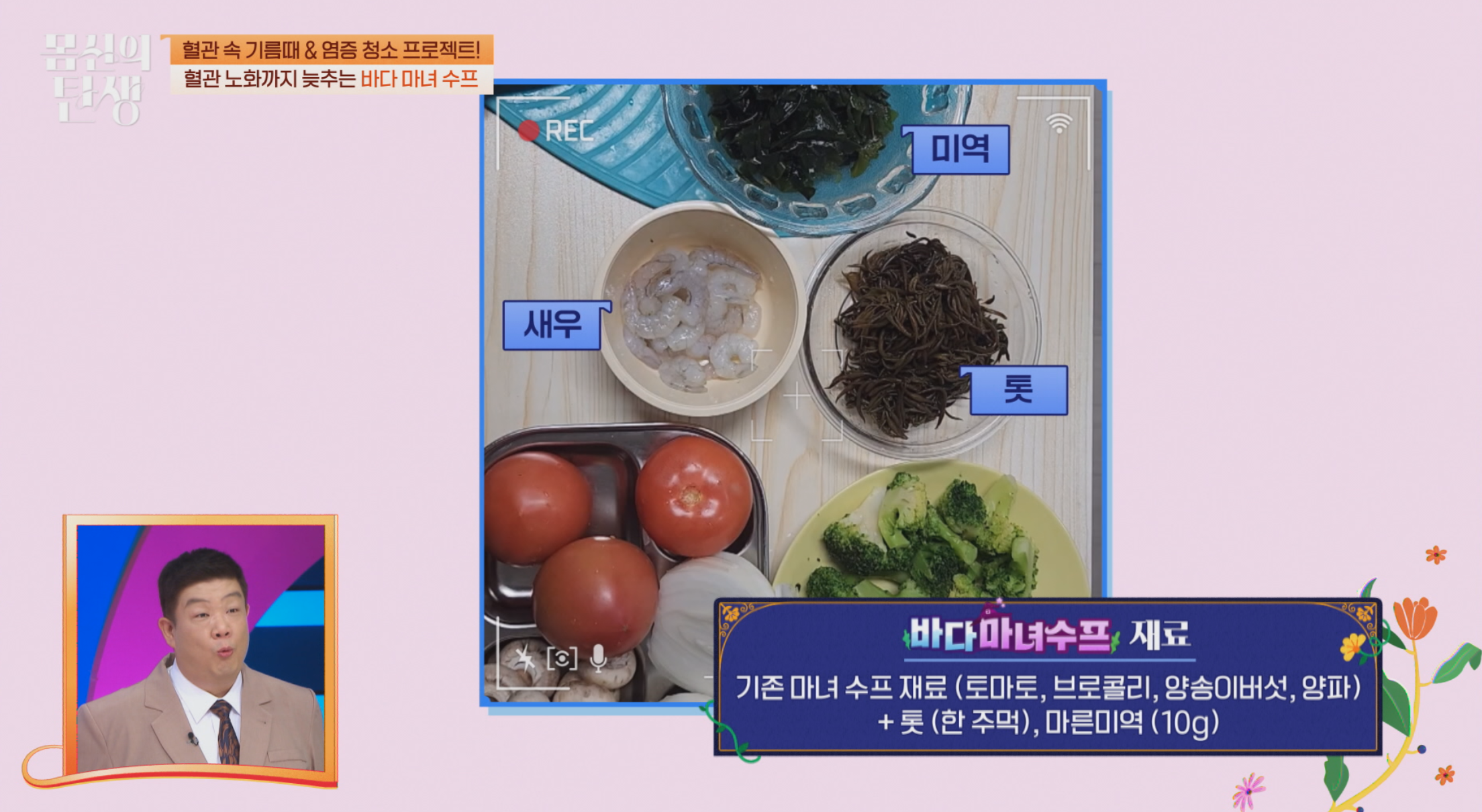 방송에서는 “채소 스프 + 해조류” 구성이 기본이며, 단백질은 점심 등 다른 끼니에서 충분히 섭취하도록 권장했습니다.