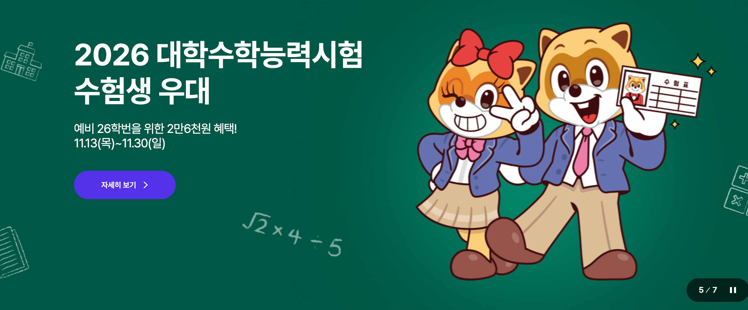 - 대부분의 프로모션은 수능일 다음날 또는 수능 직후부터 시작되는 경우가 많습니다.
