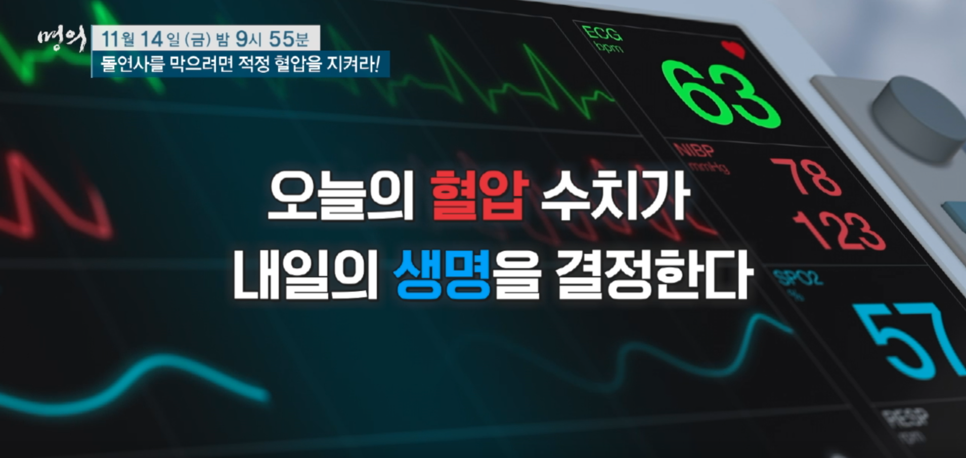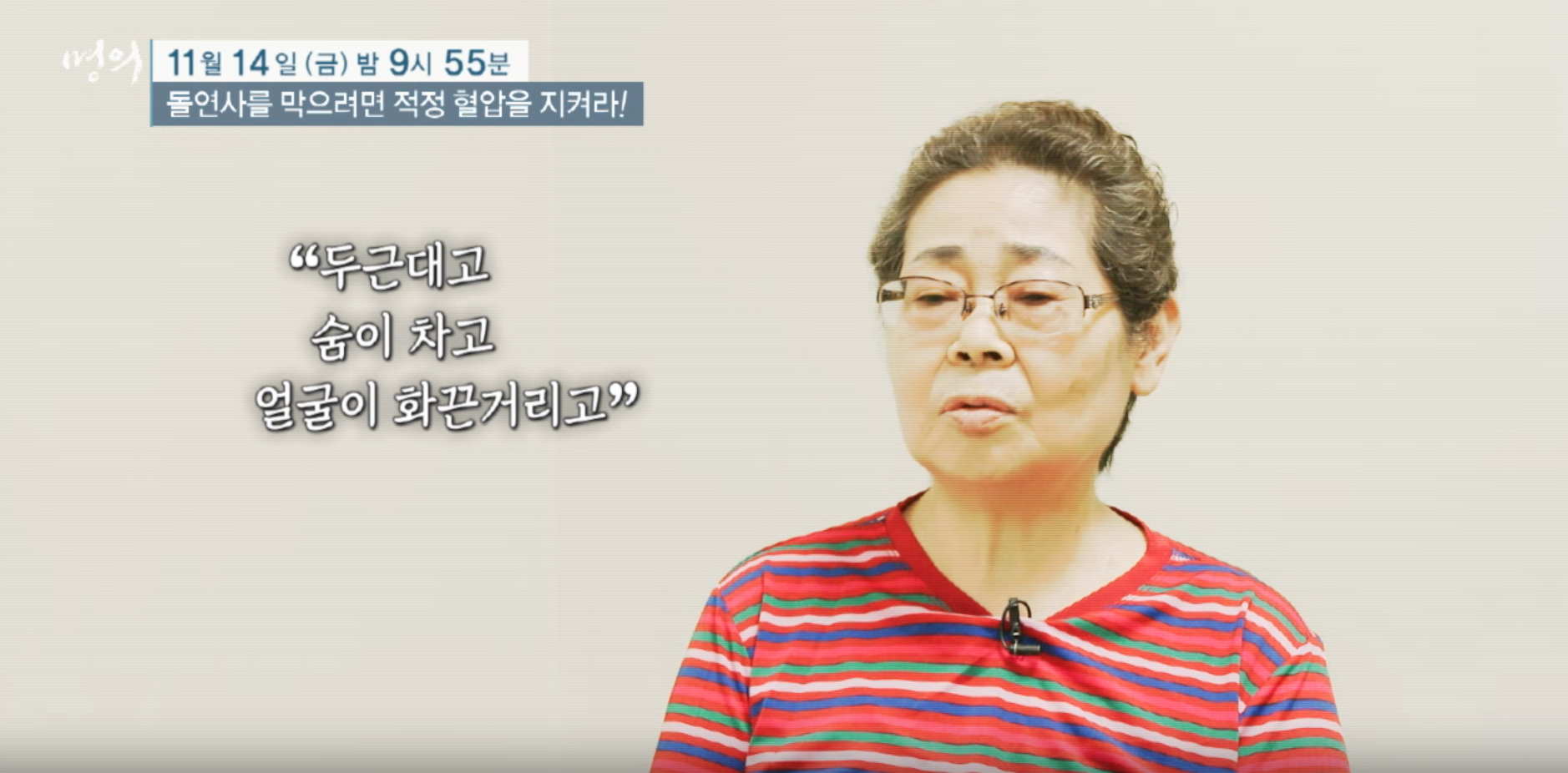 - 방송제목: 〈돌연사를 막으려면 적정 혈압을 지켜라!〉